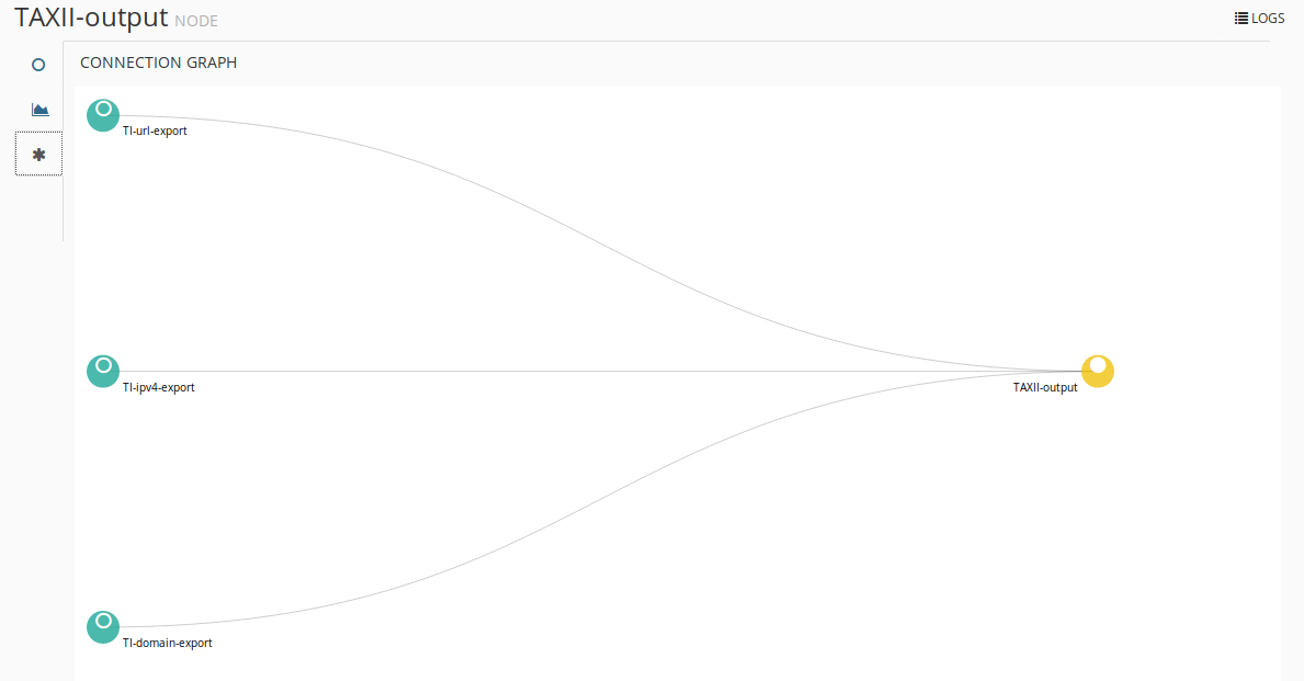 nodes: TI-url-export: inputs: [] output: true prototype: stdlib.listURLGeneric TI-domain-export: inputs: [] output: true prototype: stdlib.listDomainGeneric TI-ipv4-export: inputs: [] output: true prototype: stdlib.listIPv4Generic TAXII-output: inputs: - TI-url-export - TI-domain-export - TI-ipv4-export output: false prototype: stdlib.taxiiDataFeed
