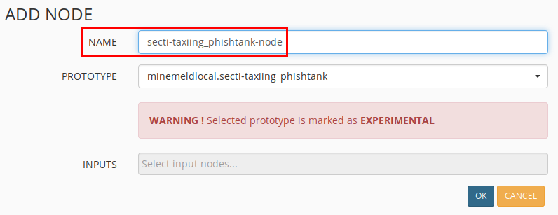 Move to Config / Prototypes page and search for the new installed node (taxiing.phishtank).